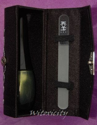 Like I said before, I love the case in which the nail polish bottle comes. It’s basically an oversized liptick case, big enough to hold the tall bottle. I think it’s cool and handy that you can store a mini nail file in there too.