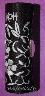 Every KOH Colours! nail polish comes in a case with embroidery and the KOH logo. The case is shut with a press-stud. Inside, under the flap, are two elastic bands to hold a mini nail file. The brush handle is long and narrow and the brush is pretty standard.